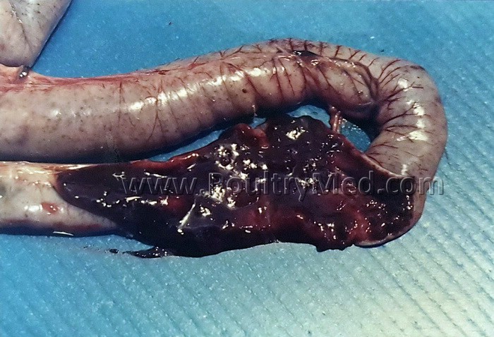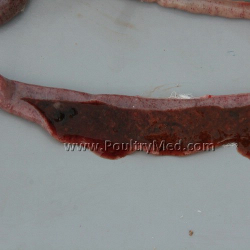 Eimeria necatrix: extensive haemorrhages in small intestine.