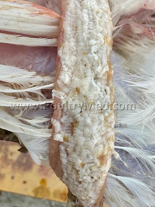 Tapeworms in 6 wks old turkeys (Image by Dr Gilad Ayali)