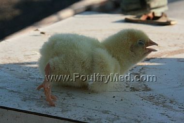Mycoplasma gallisepticum in day-old chick, originated from a positive broiler-breeder flock.