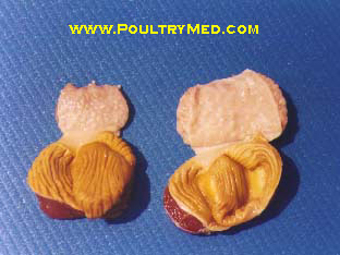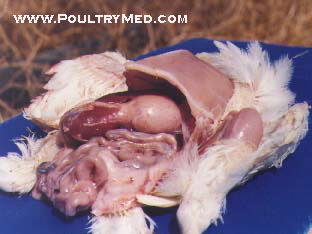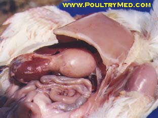 Proventriculitis or proventricular distension. The poventriculus is large almost as the gizzard.