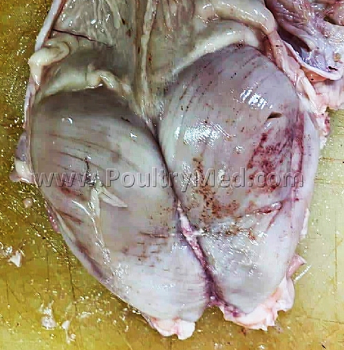 Hardening of the breast muscle in the proximal part. Surface hemorrhaging.