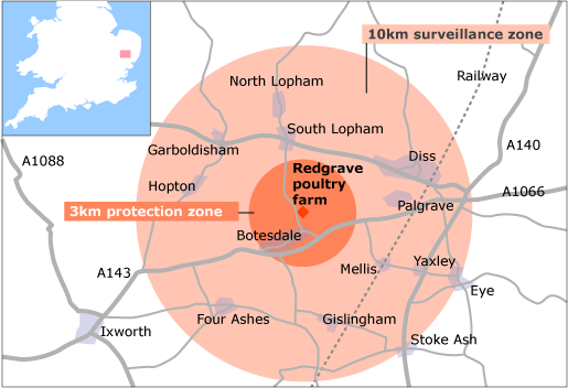 Initial tests at the Veterinary Laboratories Agency suggest that free-range turkeys on a Suffolk farm are infected with the H5N1 strain of avian influenza. This is the first outbreak of the H5N1 virus in the UK since February when the disease was found in turkeys at the Bernard Matthews plant, in Holton, also in Suffolk.