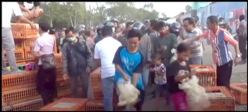 Indonesian poultry farmers give away free chicken to protest plunging prices