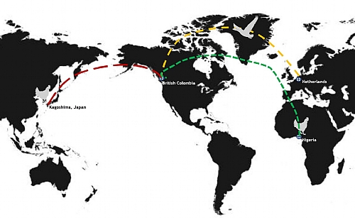 A new study, demonstrates the presence of two ancestrally and genetically different GsGd lineage H5N1 HPAI clade 2.3.4.4b viruses isolated from domestic chickens and Bald Eagle in British Columbia in 2022. This work revealed the current outbreak viruses in British Columbia were linked with viruses circulating in Asia, Europe, West Africa and the ongoing expansion of H5N1 HPAI viruses from parts of Canada and the USA. The two viruses, although identified from the same province, are distinct based on phylogenetic reconstruction, suggesting they might have different incursion routes. The genetic footprints of all segments of the viruses, integrating migratory wild bird flyways and our phylogenetic data, provide evidence that the H5N1 HPAI viruses have been introduced to British Columbia likely through two prominent flyways - the East Asia Australasia/Pacific and the Atlantic flyways.